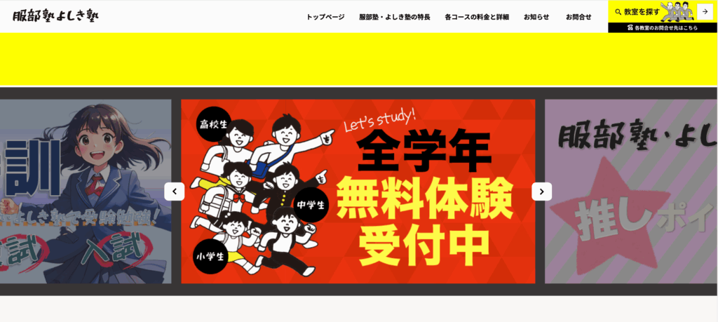 料金案内ページでは、「小学生」「中学生」「高校生」のそれぞれのコース内容、時間や料金など、今後変更する可能性のある部分のテキストをWEB制作会社に依頼しなくても、ご自身で変更することができます。
