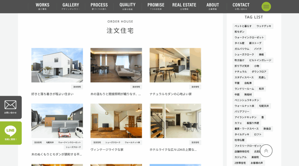 各コンテンツの中には、たくさんの記事があるため、右側にタグリストを設置。